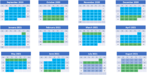 Interdisciplinary, hybrid, and synchronized education calendar – 7 week interdisciplinary unit, 2 week gap between each unit
