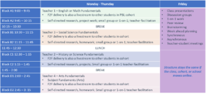 Interdisciplinary daily and weekly classroom timeline – F2F, Hybrid, or fully online